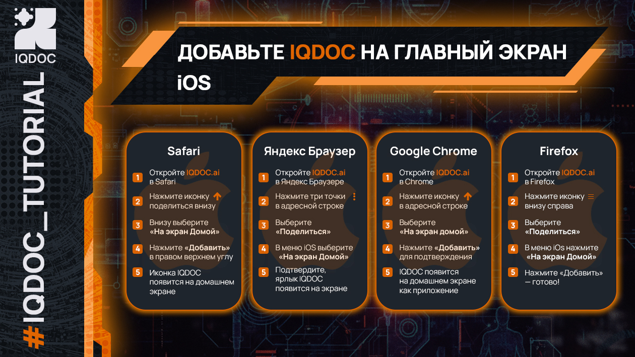 Мобильное приложение в разработке, но пользоваться IQDOC с телефона можно уже сейчас. Показываем, как добавить сайт на домашний экран Android и iOS.